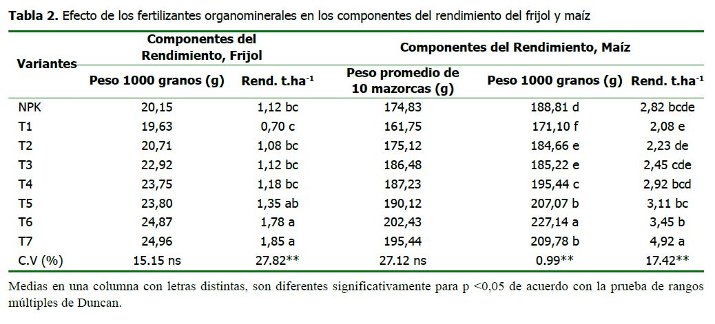 Efectividad agronómica de la fertilización organomineral con zeolita en el rendimiento de frijol y maíz